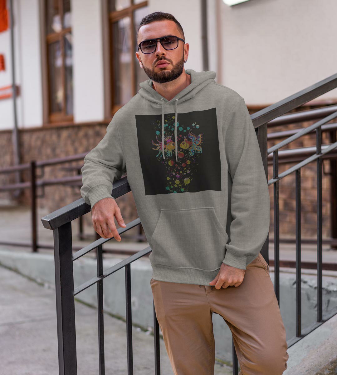 パーカー 男女 メンズ レディース 長袖 ホワイト グレー ブラック デザイン 150 S M L XL 2XL parker hooded sweatshirt フーディ 白 黒 灰色 008363 イラスト 魚 カラフル