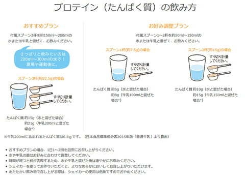 ※2おすすめプランの場合(22.5g当たり)○おすすめのタイミング運動時:運動後のたんぱく質補給に食事時:たんぱく質が不足している時に就寝前:お休み前のたんぱく質補給に表示成分<原材料>大豆蛋白、水溶性食物繊維、ドロマイト、パン酵母末、大豆ペプチド、食塩、HMBカルシウム、有胞子性乳酸菌末、植物油脂/卵殻Ca、乳化剤、V.C、糊料(増粘多糖類)、香料(乳由来)、甘味料(アスパルテーム・L-フェニルアラニン化合物、スクラロース、アセスルファムK)、ピロリン酸第二鉄、V.E、パントテン酸Ca、ナイアシン、V.B6、V.A、V.B2、V.B1、葉酸、V.D、V.B12<栄養成分表示>スプーン3杯(22.5g)当たりエネルギー・・・81kcalたんぱく質・・・15g脂質・・・0.75g炭水化物・・・3.6g食塩相当量・・・0.59gビタミンA・・・257〜660μgビタミンB1・・・0.40mgビタミンB2・・・0.47mgビタミンB6・・・0.44mgビタミンB12・・・0.80μgビタミンC・・・38mgビタミンD・・・3.1μgビタミンE・・・2.9mgナイアシン・・・4.4mgパントテン酸・・・2.0mg葉酸・・・100μgカルシウム・・・284mgマグネシウム・・・134mg鉄・・・4.0mg銅・・・0.56mg亜鉛・・・3.4mgマンガン・・・1.4mgセレン・・・14μgクロム・・・15μgモリブデン・・・55μg広告文責:アットライフ株式会社TEL 050-3196-1510 ※商品パッケージは変更の場合あり。