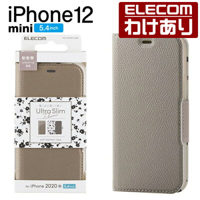 エレコム iPhone 12 mini 用 ソフトレザー ケース UltraSlim Flowers 磁石付き 手帳型 アイフォン 12 ミニ 新型 iPhone12 mini レザー ケース カバー 薄型 磁石付き グレージュ:PM-A20APLFUJBE【税込3300円以上で送料無料】[訳あり][エレコムわけありショップ][直営]