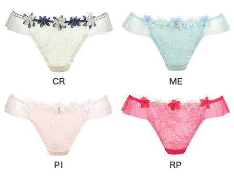 ブラジャー(BCカップ) ブラジャー(DEFカップ) ブラジャー(DEFカップ) ブラジャー(Gカップ) スタンダードショーツ(M・L) スタンダードショーツ(LL) ボーイレングスショーツ Tバックショーツ キャミソール ・ブラ(PB-2320・2321)とおそろいのレースを使用し、ウエストのフリルチュールで華やかな印象に。